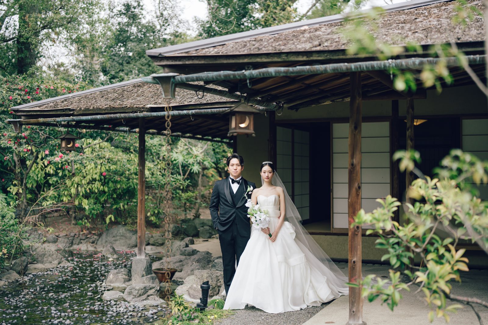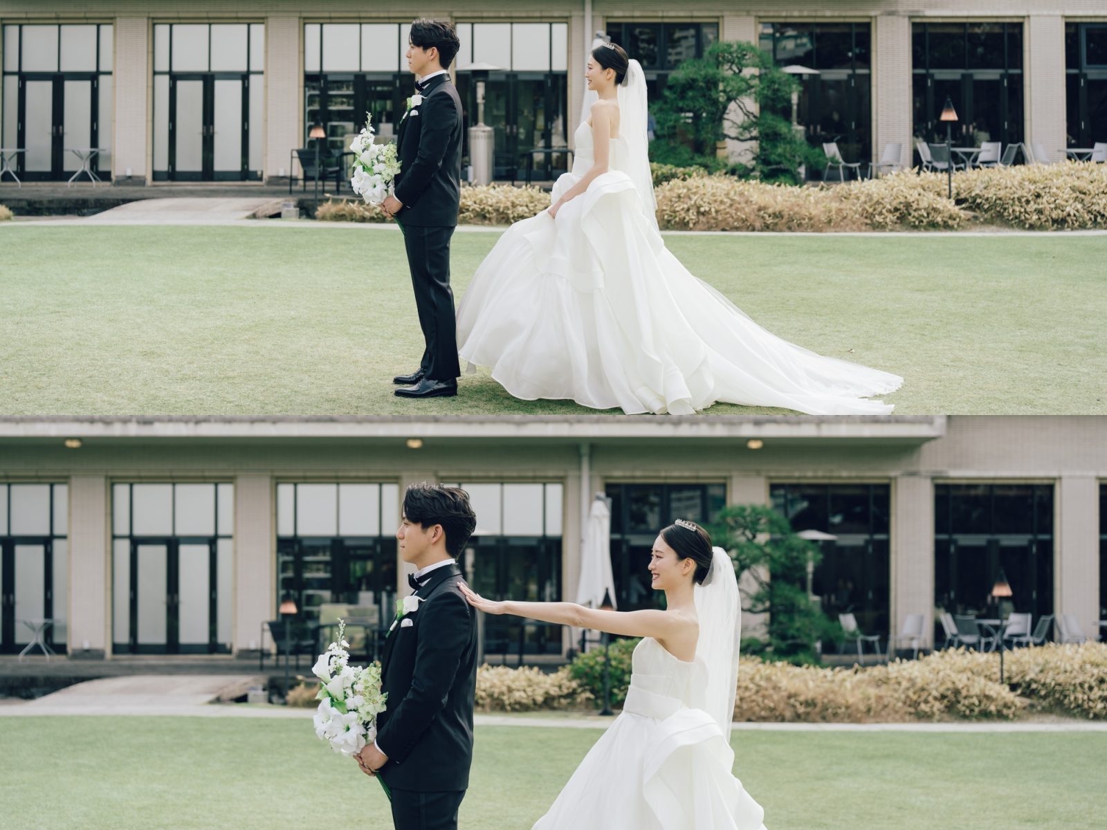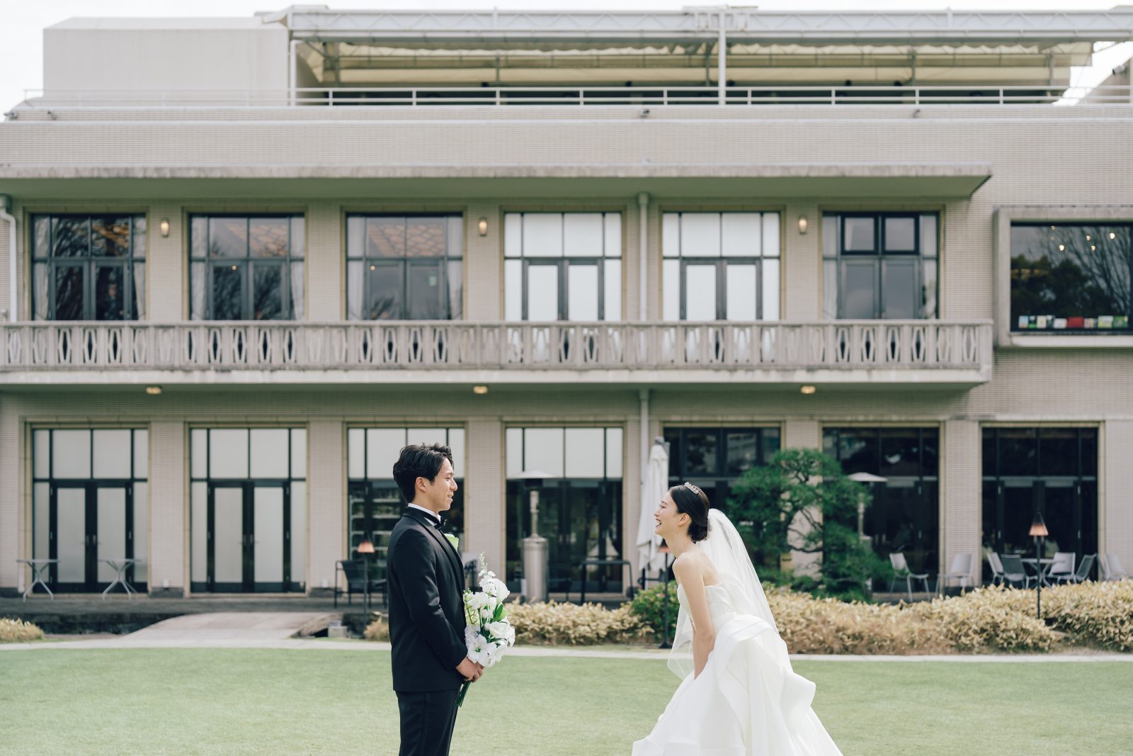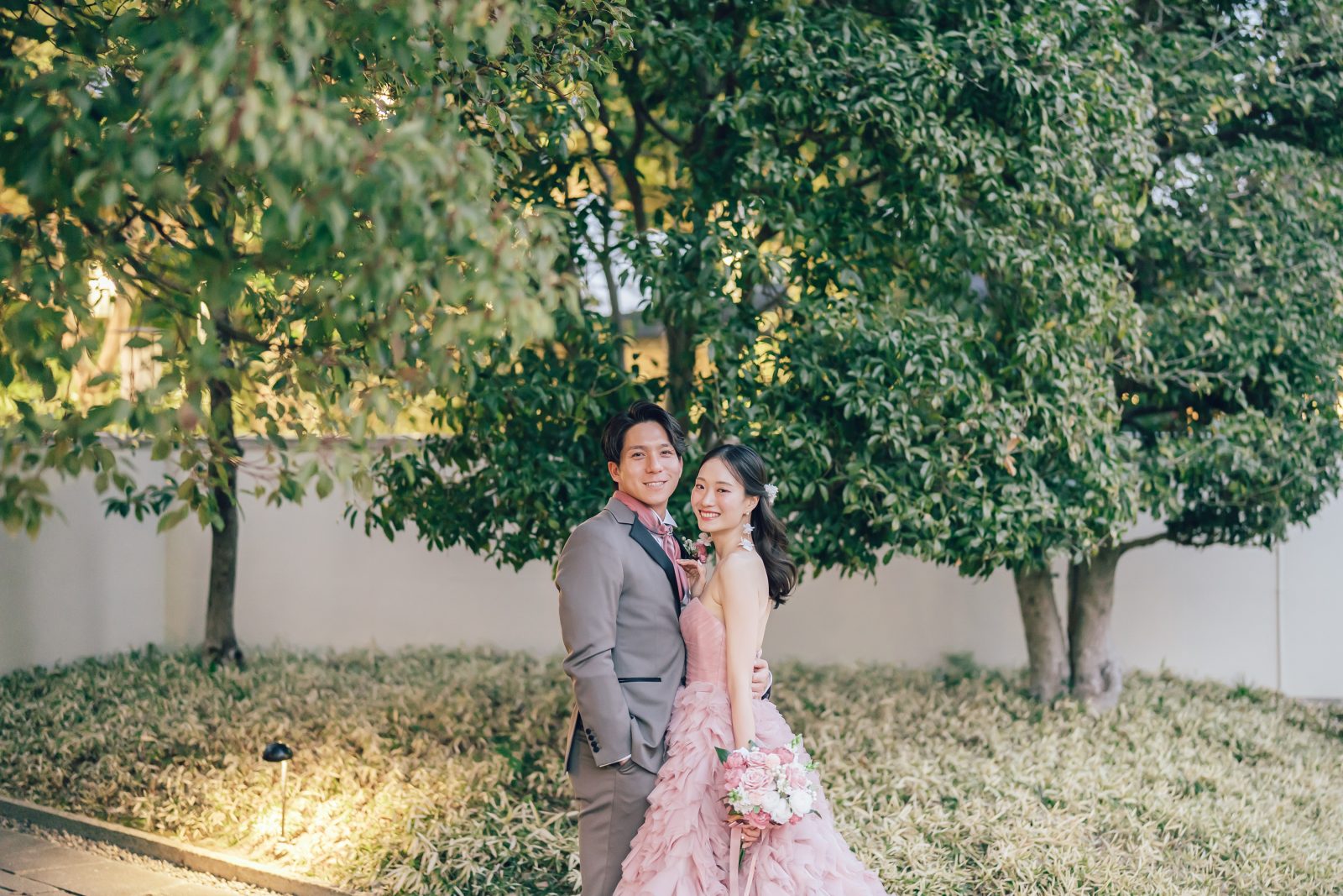 豊かな緑が揺れるガーデンで 初めて目にするお互いの晴れ姿