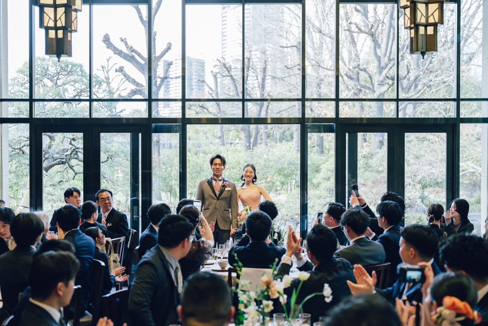 ゲストの視線が一箇所に集まり 窓が開いた瞬間に歓声と拍手が会場を包み込みます