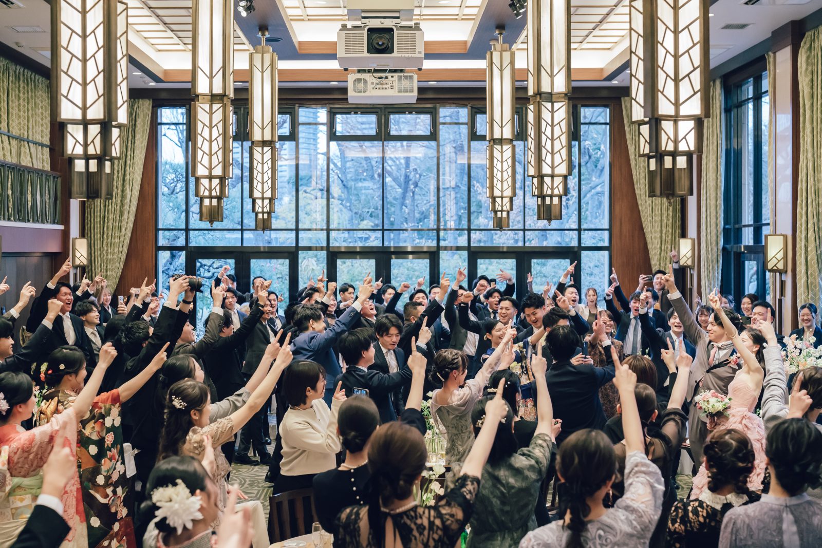 結びの挨拶のあと おふたりの呼びかけで ゲスト全員がひとつになる瞬間